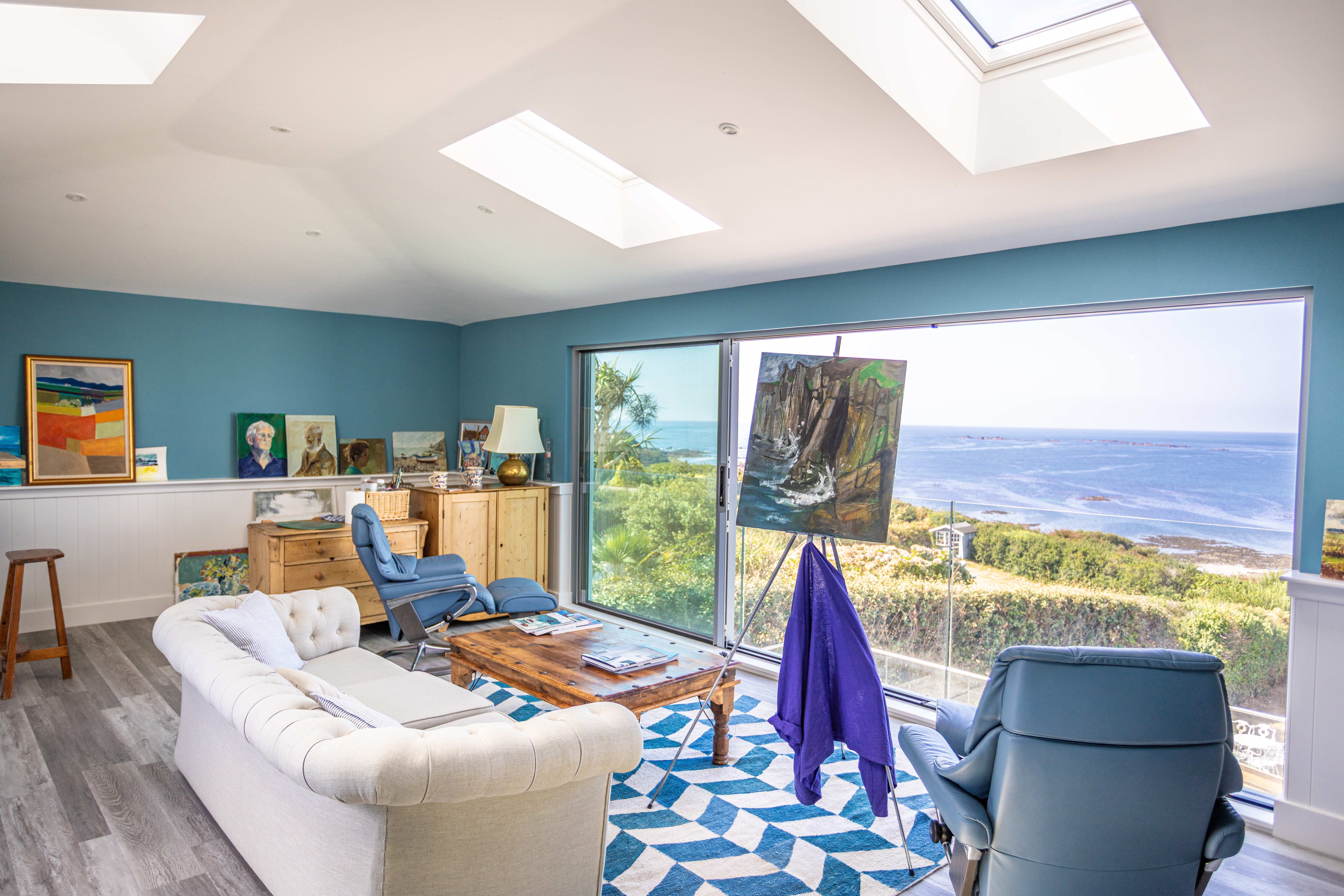 Our task was to take the existing house and open it to capture the ever-changing light and view of Rocquaine Bay.